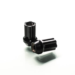 Introducing O.W.L. STEEL RACE NUTS, our "Obsessed with Lightness" product line, crafted from Chromoly 4130 steel, known for its decades of proven strength, endurance, and durability. Featuring specially machined side slots to reduce weight, these race nuts require no special key—just a 17mm hex socket for 12mm thread lugs and a 19mm hex socket for 14mm thread lugs, with a compact 26.5 mm overall length for convenience. Tested beyond OEM standards for repeated installation, removal, torque handling, and retention, they are compatible with speed sockets and feature an open-ended design for extended racing studs. The original Titan 7 patent ensures a unique product, available in a sleek Machine Black finish, "Forged for All" and offering exceptional value. Choose between 35mm short length or 50mm tall length, available in sets of 20 or 24 for 6-lug offroad applications.