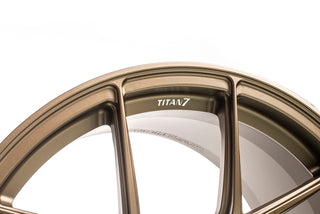 The T-S5 is a fully forged wheel designed completely with performance in mind. Pressurized with 10,000 TONS of industry leading pressure to give you a wheel that is incredibly strong while giving you all of the performance attributes you need in a track focused wheel. Upon close inspection you will notice strength adding ridges which have been strategically placed to give the wheel rigidity while keeping weight to a minimum. The split 5 spoke design was chosen for its motorsports heritage and track worthy structure. Each wheel from Titan 7 features traction improving bead seat knurling, beefed up inner rim flange for durability and strength, and logo machined accents. The T-S5 is designed for each application to clear all popular after market big brake kits while achieving maximum concavity. All wheels are durability tested according to JWL standards to ensure safety while you perform. Authentic performance from Titan 7. Forged for All. Available in Satin Titanium, Machine Black, Techna Bronze & Wicked Black.